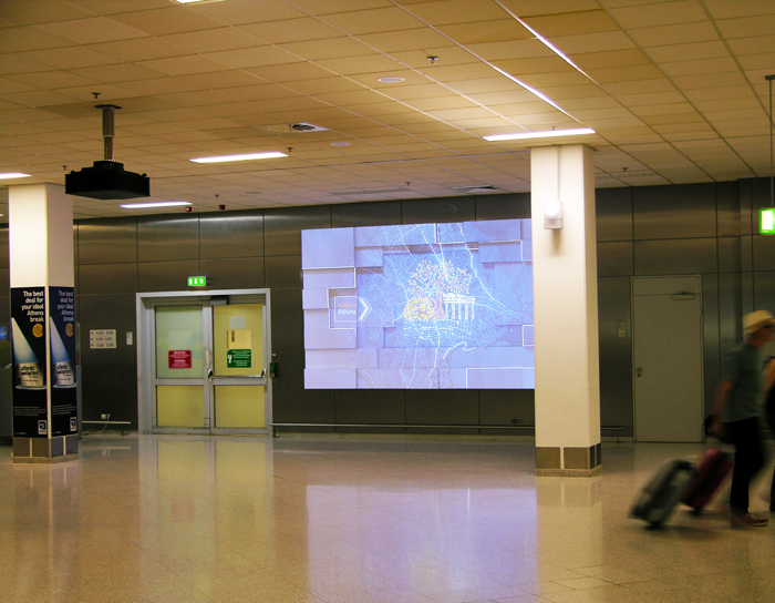 Athens International Airport El. Venizelos trusted again our company and the EIKI projectors to implement the project Athens 3D Welcome.
