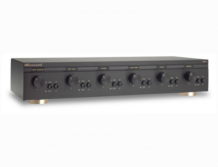 The SDB-6.1 is a highly efficient dual-source speaker selector that controls up to six pairs of speakers. The front panel provides a separate volume control for each speaker pair, allowing you to adjust the volume in each room from one convenient location.