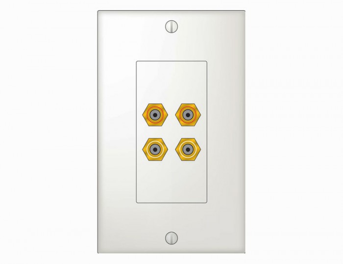 The PlateMate Modular 5-Way Binding Post Plate is a Decora® style plate with two (BP10D) pair (black and red) of 5-way binding post connectors for use in audio installations.