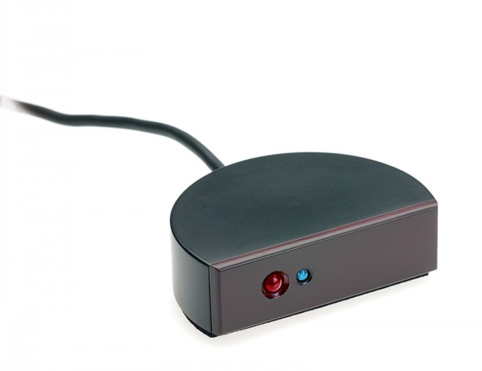 854 Table Top IR receiver. The receiver is CFL-friendly and has a front panel mounted blue talkback indicator. 84 in. cable with 1/8 in. stereo mini-plug. 12 VDC
