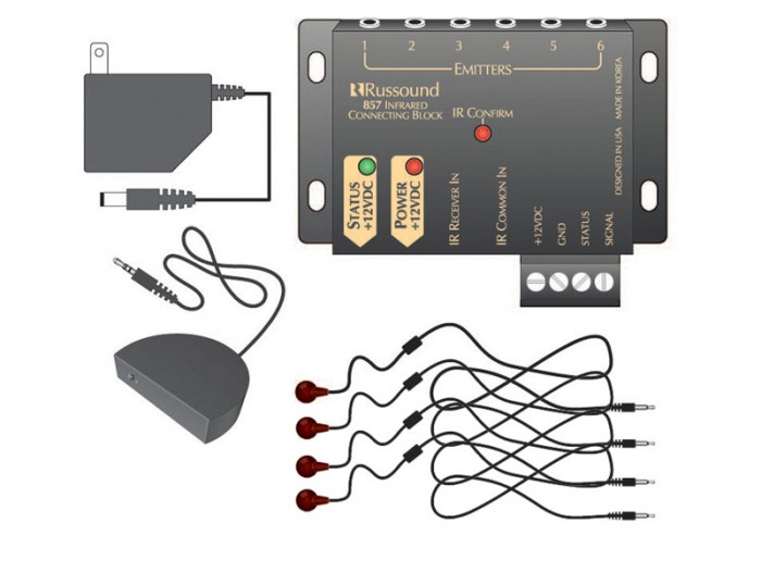 (1) 854 table top IR receiver, (1) 857 connection block, (1) 846C power supply και (4) 845.1 IR emitters.