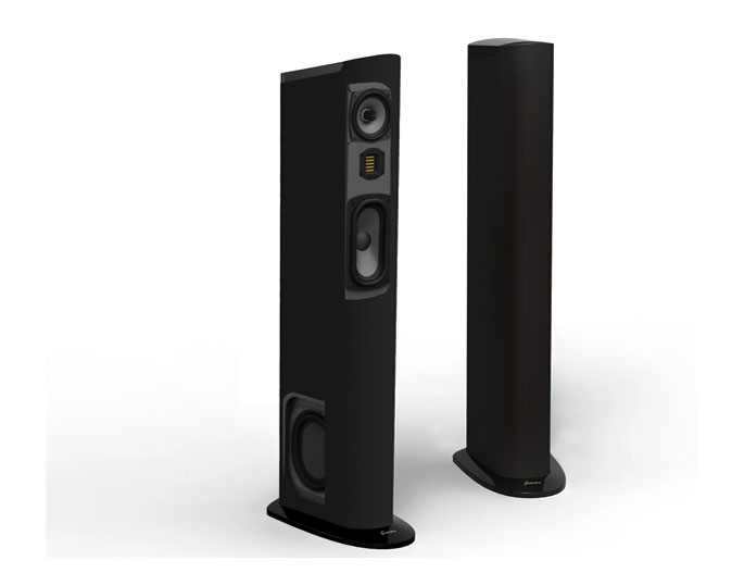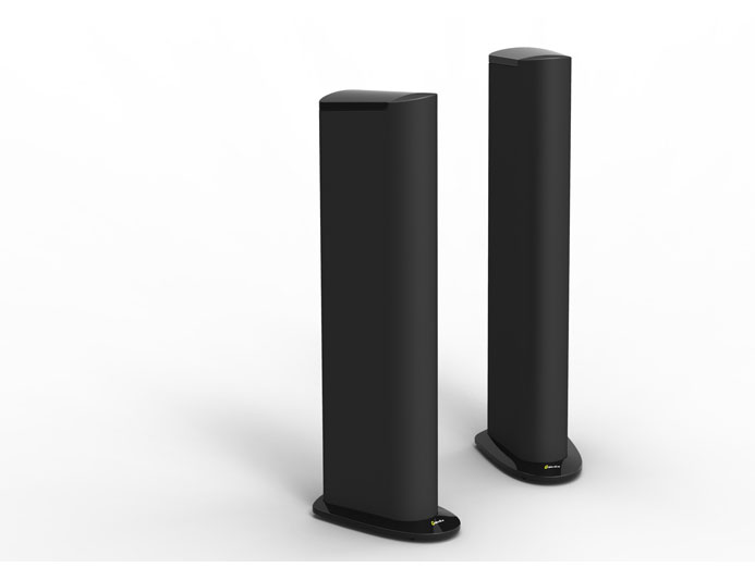 Like the Triton Two+, the newly updated Triton Three+ incorporates technologies developed for the Triton One. Its built-in powered subwoofer (a technology first pioneered by GoldenEar principals Sandy Gross and Don Givogue) includes an integral 800 watt GoldenEar ForceField digital/DSP controlled power amp driving an active front-mounted long-throw 5" x 9" quadratic subwoofer driver. This is coupled to two opposing, inertially balanced 6-3/4" x 8" quadratic planar infrasonic passive radiators which are located on the sides, near the floor, in order to take full advantage of boundary coupling. There is one of the same 4.5" high-definition spider-leg, cast-basket MVPP™ drivers as used in the Triton Two+, along with the same GoldenEar signature High-Velocity Folded Ribbon (HVFR™) tweeter. Performance-wise, the Triton Three+ delivers the same boxless three-dimensional imaging as the bigger Tritons. Likewise, the powerful, deep subwoofer bass blends perfectly with the silky smooth, utterly transparent midrange and high frequencies, putting many dramatically more expensive speakers to shame.