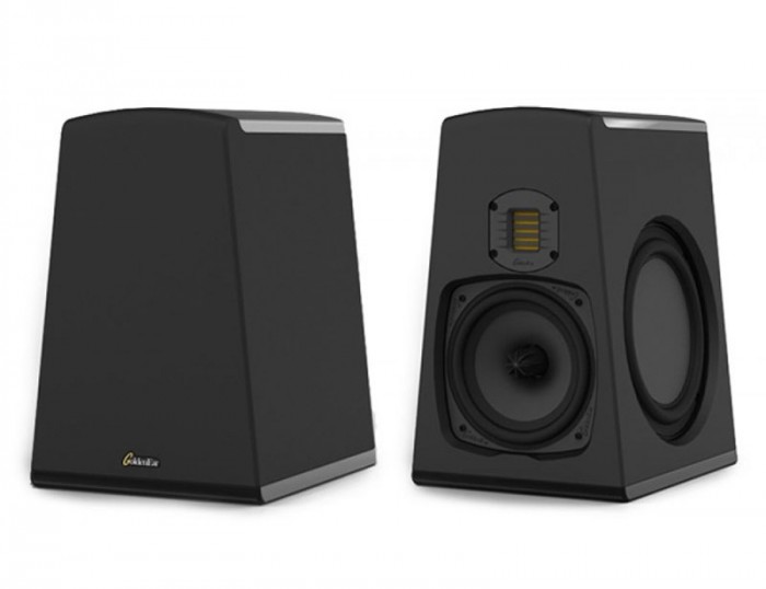 The compact, 14" Tall Aon 3 Bookshelf Monitor (on left in photo to right, with grille sock removed) incorporates a 7", High-Definition, Multi-Vaned Phase Plug (MVPP™), cast-basket Mid-Bass Driver, coupled to two 8" Inertially-balanced side-mounted Low Frequency Radiators and the GoldenEar High-Velocity Folded Ribbon Tweeter (HVFR™).
